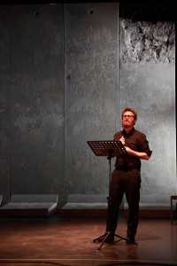 La Palestine, cette terre où vivait un peuple et dont il a été chassé. Des morts, tant de morts, depuis des décennies. Aujourd’hui il y a 5 millions de Palestiniens en exil. Qui oserait dire que ce sont là des « opinions » ? Ce sont des faits connus de tous. L’opération militaire pendant l’été 2014 a été la plus violente jamais conduite par Israël sur la bande de Gaza. Israël pouvait frapper délibérément la population civile palestinienne, hommes, femmes, enfants, hôpitaux, écoles, et même des installations de l’ONU, sans craindre la moindre sanction de la « Communauté Internationale ». Face à cette impunité, le comédien Raven Ruëll décide de prendre la parole en son nom propre et crée avec Jacques Delcuvellerie et la compagnie le Groupov ce spectacle. Il dit, murmure, crie, chante, sa propre responsabilité, celle que nous pouvions éprouver du temps de l’Apartheid ou face au génocide au Rwanda qui a amené le Groupov à créer l’inoubliable Rwanda 94 dont nous avions présenté la dernière partie, La Cantate de Bisesero, en octobre 2013. Élaboré dans cette tradition du théâtre documentaire, le spectacle évolue vers une dimension plus intime et plus épique à la fois. Il fait entendre des faits et des voix, aussi bien israéliennes que palestiniennes, ignorés par la plupart des médias. Face à une telle tragédie, comment rester neutre ?