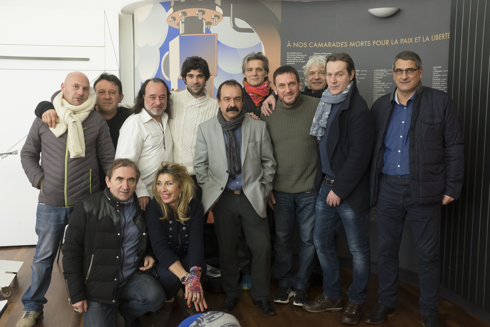 L’UFM a accueilli salle Jean Borne, du 18 au 22 janvier, Yvan le Bolloc’h et ses guitaristes au swing manouche endiablé pour la préparation de son prochain spectacle « Faut pas rester là », qui fait suite à « ma guitare s’appelle reviens » que nous avions programmé lors du 75e anniversaire de l’UFM en octobre 2012. C’est tout naturellement que nous avons accepté de mettre notre belle salle rénovée à sa disposition, l’objectif pour les années à venir étant de renouer avec un passé culturel des métallos, qui tendait à disparaitre ces dernières années. Philippe Martinez, Secrétaire Général de la CGT est venu à sa rencontre pour le saluer et l’encourager pour son nouveau spectacle.